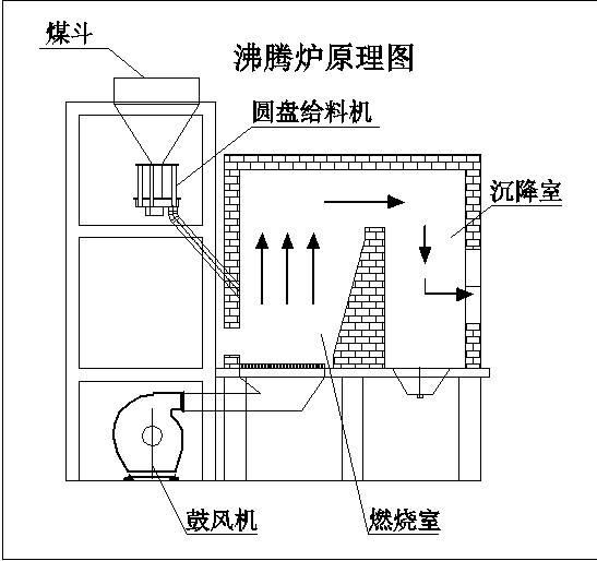 沸騰爐是一種能夠燃燒劣質煤的新型爐,從燃燒方式上,它克服了層燃爐和噴燃爐的缺點,是一種新型的流化床式燃燒爐;燃料經破碎成6mm以下的顆粒,由圓盤給料機均勻的送入爐膛,可控的高風壓通過布風板上的風帽孔射入爐床,燃料在高風壓的作用下呈流態化沸騰狀燃燒,相互摩擦、碰撞及裂解,由小及大直至燃盡為止。由于煤粒能與空氣充分混合并進行充分的熱交換,因此新加入的煤粒能充分的被熱煙氣包圍,因而被迅速強化燃燒,此種意義上它是一種強化燃燒設備。