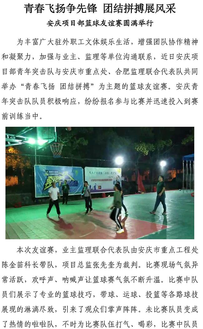 青春飛揚爭先鋒 團結拼搏展風采——安慶項目部籃球友誼賽圓滿舉行