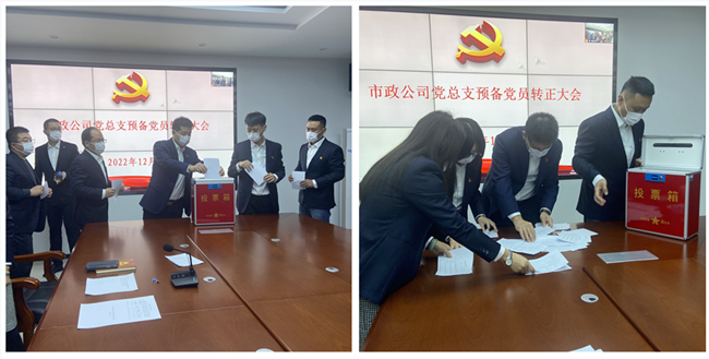 12月6日,市政公司黨總支第一黨支部、第二黨支部先后召開預備黨員轉正會議,討論曹凱、孔慶巖2名同志的轉正事宜。各項目部黨員視頻參會。