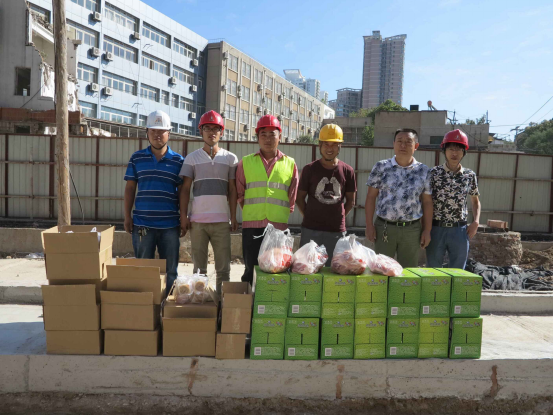 公司為農民工隊伍送去了大米、精肉、月餅、酒等節假日用品