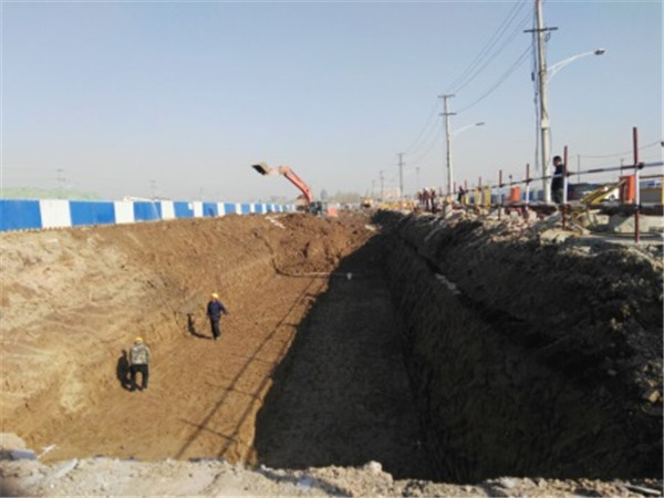目前正在進行的是電纜隧道,雨水溝溝槽的開挖以及對溝槽臨邊進行防護。
