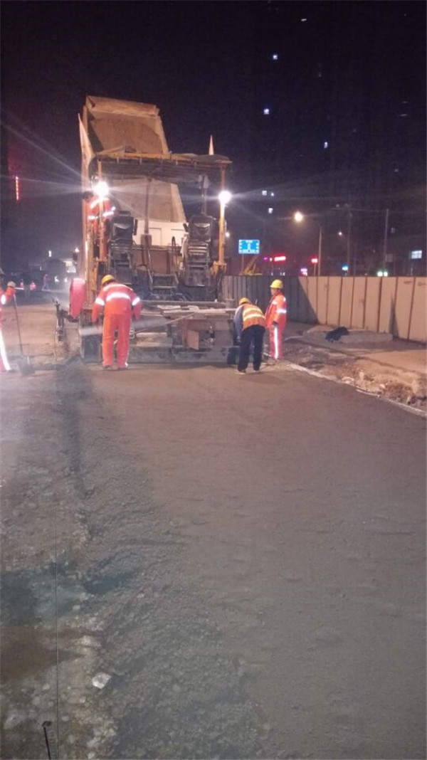 3月21日,緯十二路道路工程經(jīng)五路人行天橋進行梯道安裝,慢車道進行水穩(wěn)攤鋪施工。