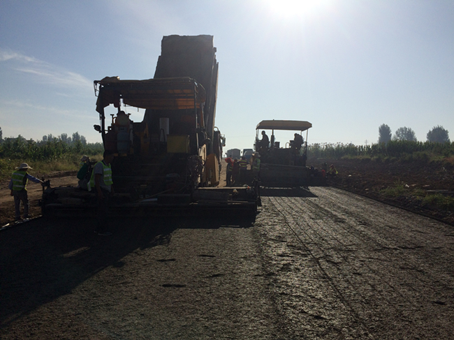 本工程于2016年5月開工,本月主要進行過路管安裝、基層水穩攤鋪和雨水口砌筑施工。